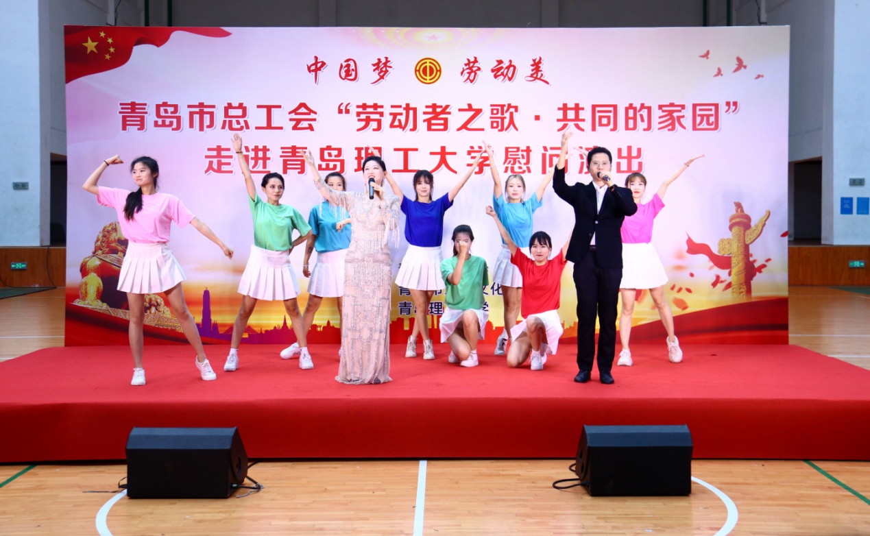 6月5日,由青岛市总工会主办、青岛市工人文化宫、365完美体育承办的“中国梦,劳动美——劳动者之歌·共同的家园”文艺演出走进365完美校园,为365完美400余名师生送来了慰问与祝福。