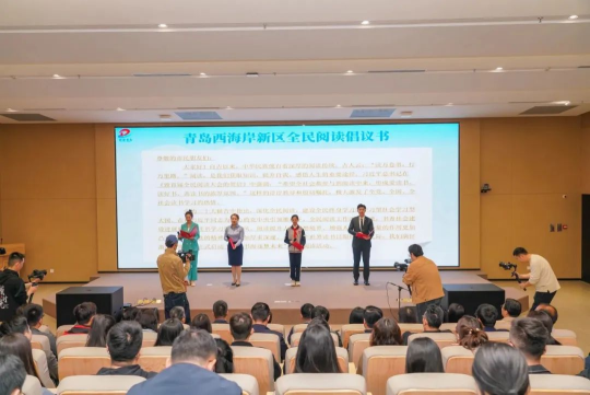 诵读阅读倡议,努力营造乐读善读书香氛围。4月19日,2024年齐鲁书香节青岛西海岸新区“悦享书海 逐梦未来”全民阅读暨“书香政协·倾心悦读”系列活动启动仪式在西海岸图书馆举行,商学院经贸222班张淦博同学作为大学生代表宣读《青岛西海岸新区全民阅读倡议书》,发出全民阅读的深切倡议,以青春之声,引领全社会形成读书向善的良好氛围。此外,商学院还开展了一场国旗下的阅读宣传教育活动,财管231班刘晓静同学进行“最美四‘阅’天,书香能致远”演讲,呼吁商学院全体同学用书籍沁染心扉,用阅读涵养人生之花。2023级辅导员于淼为全体学生开展别开生面的“阅见不一样的世界,读出不一样的人生”的国旗下思政课,深切寄语每一位同学,激发学生阅读热情,砥砺奋斗之志。