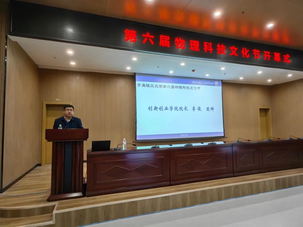 李俊对文化节的举办表示祝贺,并介绍了学校学生创新创业活动的丰硕成果,肯定了物理科技文化节对提升大学生的创新精神起到的积极作用。
