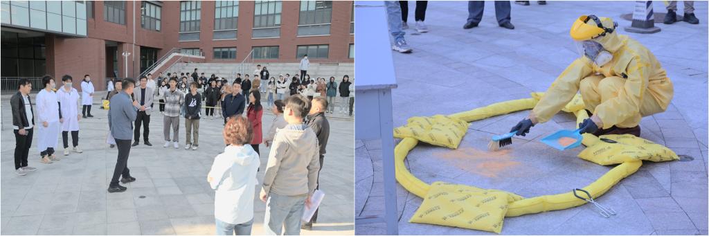 开展化学品安全处置应急演练,提升实验室安全技防能力。10月20日,资产与实验室安全管理处、土木工程学院、安全管理处、校医院及相关学院的200余名师生参加了化学品安全处置应急演练活动。专家讲解化学品泄漏的危害、安全处理方案以及化学品泄漏的安全应对措施。参与人员现场演示事故发生、应急自救、信息报送、启动响应、现场处置、原因分析、整改落实等应急处置流程,增强了各部门间的应急联动能力,检验了学校实验室安全事故应急预案的科学性和可操作性,锻炼了学校实验室安全应急队伍。