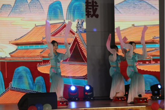 歌舞中的文化血脉,传统文化教育引人入胜。晚会充盈传统文化教育元素,二胡独奏《战马奔腾》全曲体现马蹄疾驰、奔腾飞跃的动感,展现了蒙古马的勇敢和自由,也展示了中华民族乐器的独特魅力;古风歌曲《锦鲤抄》、《声声慢》让人着迷,置身曲调中,仿佛在与古人对话;辅导员于淼弹奏、袁涛演唱的古筝弹唱《红尘客栈》将中华优秀传统文化展现的淋漓尽致,歌曲中融入了大量的中华传统文化元素,让人感受到中华文化的博大精深,将本场晚会推向高潮。