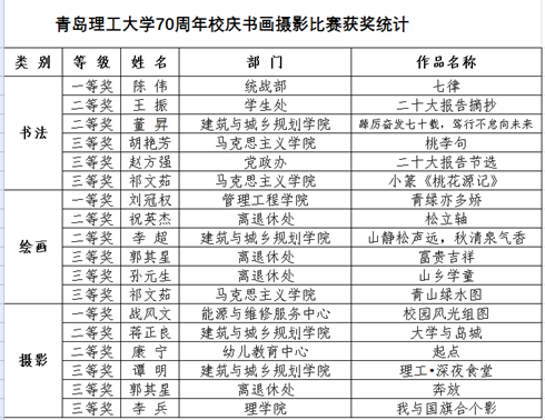 经过评委们认真评选,共选出书法、绘画和摄影各一等奖一名、二等奖两名、三等奖三名,获奖结果如下: