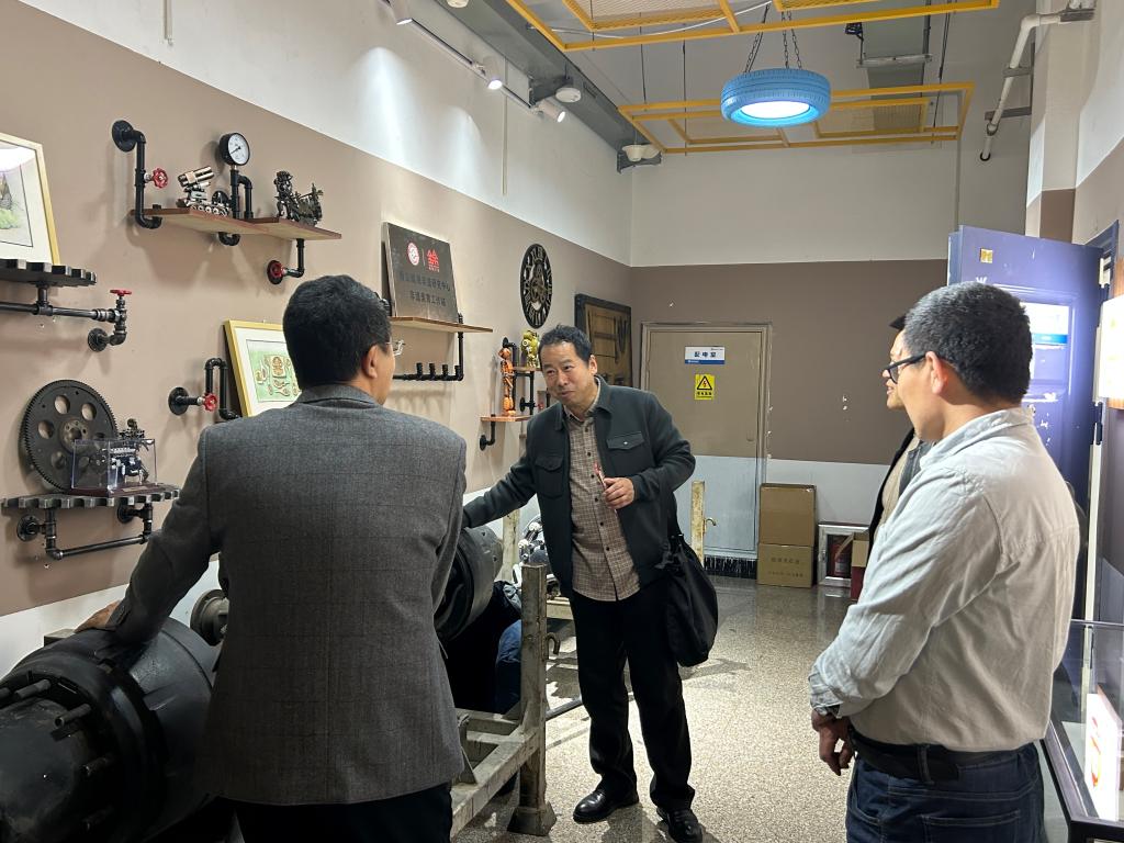 4月10日,青岛锦绣非物质文化遗产研究中心主任侍锦教授到“非遗所思”理工美育工作室考察交流。机械与汽车工程学院党委副书记、副院长董虎,学生工作办公室主任、团委书记王成陪同参观。