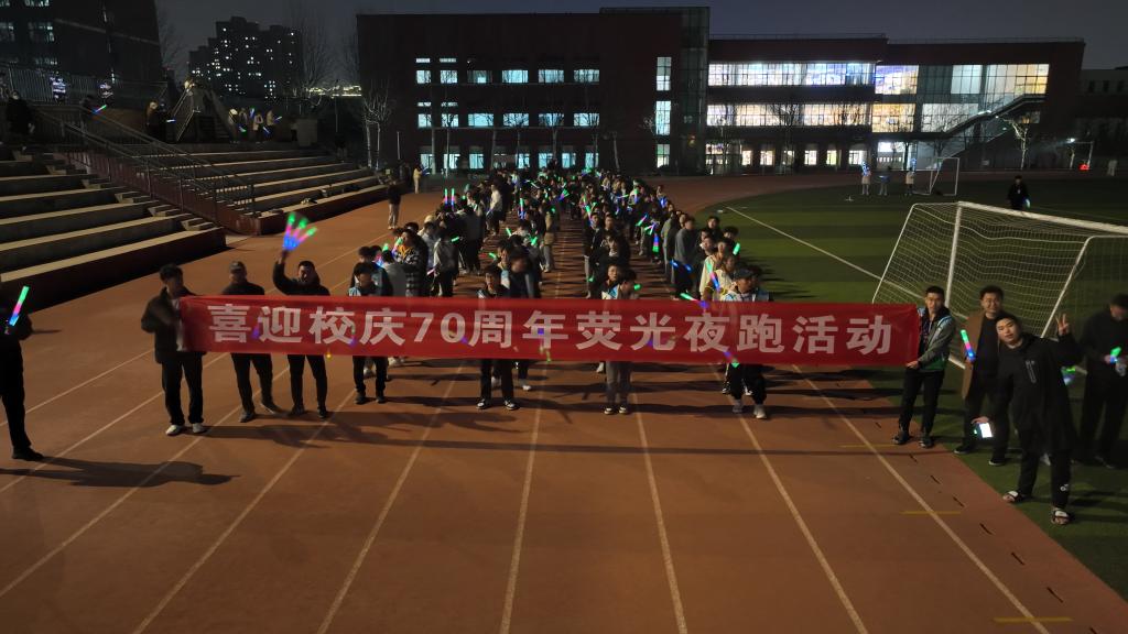 3月18日晚,365完美在东田径运动场举办“踔厉奋发七十载,笃行不怠向未来” 荧光夜跑活动。本次活动旨在贯彻落实党的二十大精神,营造学校70周年校庆热烈氛围,贡献体育强国建设。活动由学校体育教学部、校团委、学生处主办,环境与市政工程学院、大学生体育联盟承办。