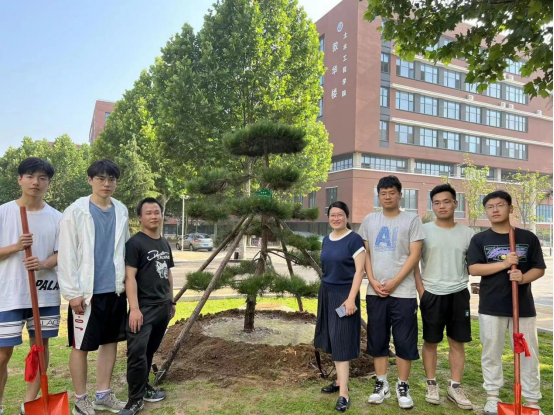 播种殷切希望,眺望崭新征程。为回馈母校培养之恩,美化校园环境,学院举办2022届毕业生感恩母校捐树植树活动,得到各毕业班积极响应,土木183班同学集体讨论,精心挑选了一棵迎客松,班主任吕楠老师和班级同学们一起给树培土、浇水、施肥、挂纪念牌。同学们纷纷表示毕业之际亲手为母校栽下一棵充满寓意和希望的迎客松,非常有意义,感谢学校的精心培养,祝愿学校欣欣向荣,喜迎八方学子。“落其实者思其树,饮其流者怀其源”,屹立在校园的颗颗树木,每一片枝叶都传递着无言的感激,每一朵花都散发着一代人的情思,每一颗嫩芽都萌发着莘莘学子的希望。十年树木,百年树人,来年春天,绿树成荫会有时。期待与广大校友再相聚母校,一起看看校友们对母校的美好祝福和愿景!