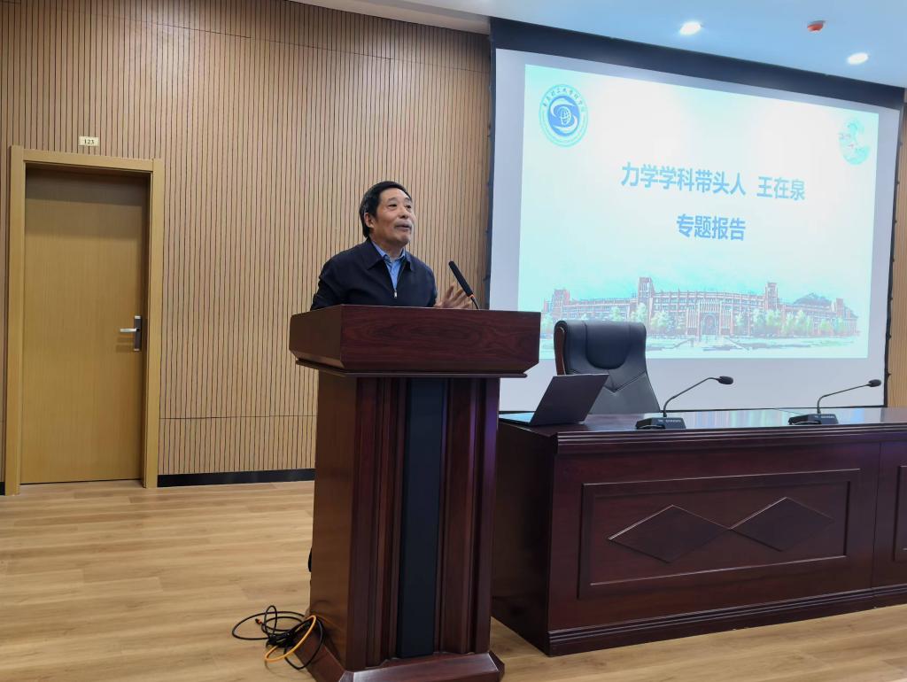 王在泉结合自身学习、工作经历,从工程力学专业基本情况和未来发展介绍、工程力学学生就业方向和发展前景、工程力学专业课程学习方法和内在关联等三个方面作《传承理工精神 推动力学发展》专题报告。王在泉与学生们亲切互动,通过一个个实际案例分享了关于工程力学专业的见解与思考,勉励同学们要勇敢追求梦想,树立积极向上的学习态度,通过建设良好的舍风、班风凝聚专业学风,为未来开辟更加广阔的发展空间,为工程力学专业发展作出青年贡献。