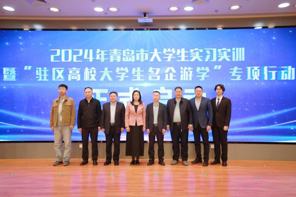12月19日,党委常委、副校长郭建锋,学生工作处处长高洁,就业指导中心、各学院就业工作人员和25名学生代表参加2024年青岛市大学生实习实训暨“驻区高校大学生名企游学”专项行动启动仪式。