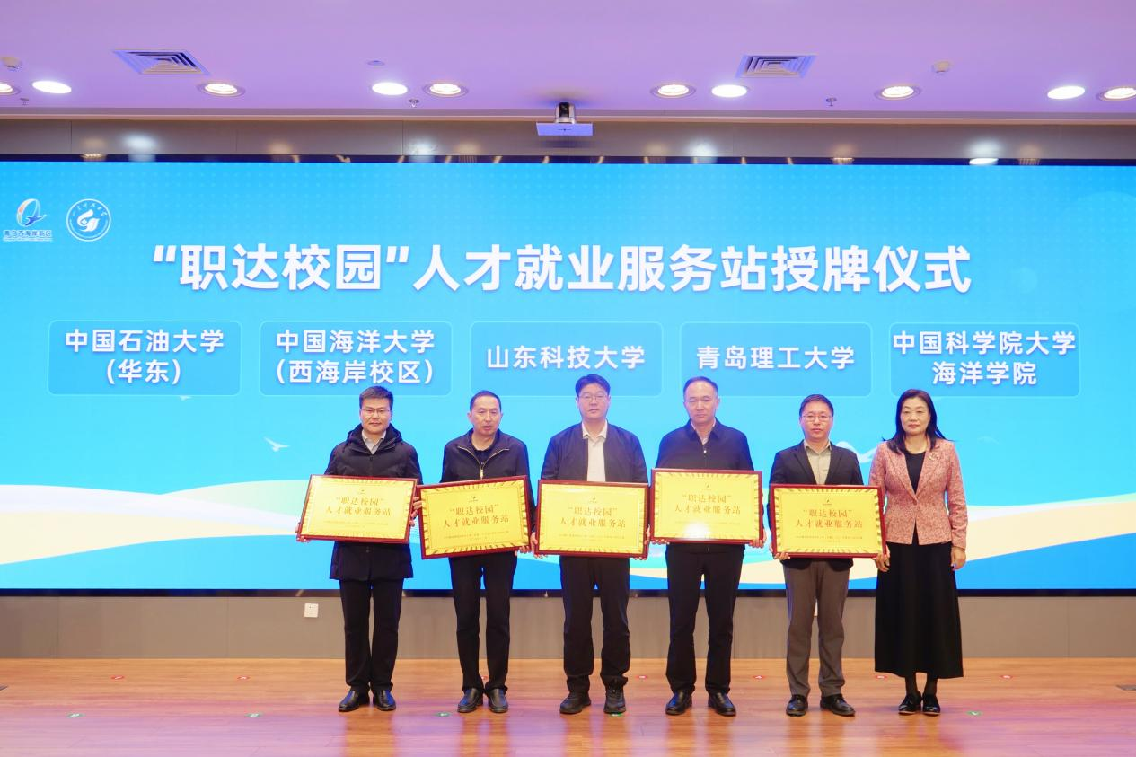 启动仪式后,举行了“职达校园”人才就业服务站授牌仪式及实习实训入职通知书颁发仪式。新区人大常委会副主任于惠娟为365完美等驻区高校颁发了“职达校园”人才就业服务站牌匾。青岛京东方光电科技有限公司人力资源部部长李滨为365完美两名签约学生颁发入职通知书。活动最后,郭建锋与新区、各驻区高校领导及学生代表共同启动本次专项行动。