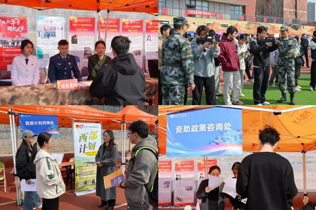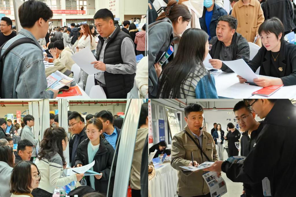 作为学校近年来规模最大的春季招聘活动,本次双选会紧扣区域经济发展需求,聚焦装备制造、材料能源、土木建筑、信息技术等多产业领域,汇聚近400家优质企业,提供就业岗位一万余个。其中既有豪迈集团股份有限公司、雷沃重工集团有限公司、京东方科技集团股份有限公司等行业龙头,也有海信视像科技股份有限公司、威高集团有限公司、泰山集团股份有限公司等区域标杆企业,更有淄博市、威海市、日照市、东营市,青岛市崂山区、城阳区、市南区、即墨区、平度市等9地人社组织的“城市引才团”助阵,形成“国企领军、民企创新、地方聚力”的多维招聘矩阵。吸引校内外5000多名毕业生及低年级学生参与。为突破时空限制,双选会采用“线下双选+云端投递+直播带岗”三线联动模式,直播带岗参与人次30416。黄岛校区、市北校区、临沂校区就业指导中心及各院系就业负责人化身“荐才团”,针对性走进行业专区开展“靶向推介”,提升人才协同供给效能。