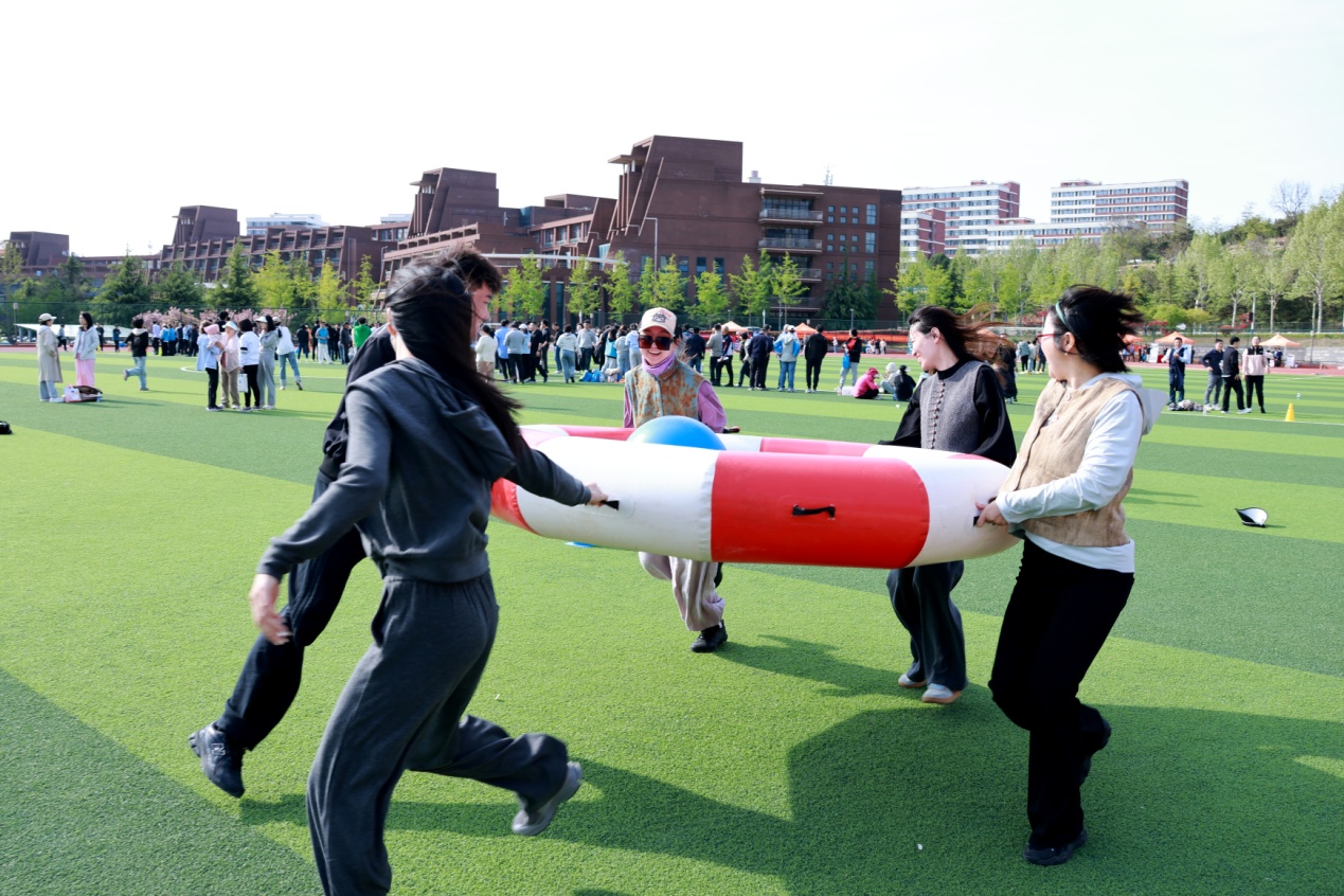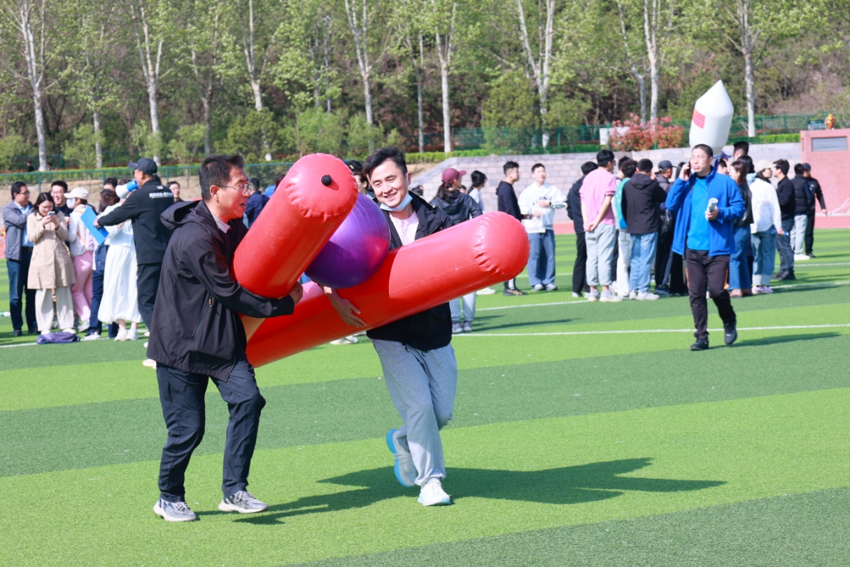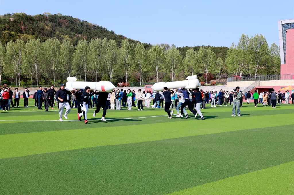 四月的风还有些许凉意,赛场上却是热火朝天。平日里严肃忙碌的老师们,在赛场上放下紧张工作,全身心投入运动的快乐中。在“财源滚滚”环节,大家步调一致,推动“财源”滚滚向前,筷子夹球等项目则考验巧手与智慧,选手们稳扎稳打,每一次成功都伴随着阵阵欢呼。