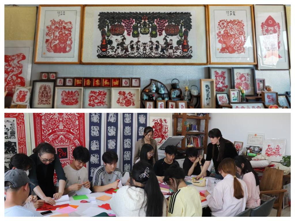 5月29日,学院副处级组织员甘露露、团委书记徐卫晓带领部分师生代表,前往非物质文化遗产传承人薛娜老师的工作室进行参观学习。薛娜细致讲解了剪纸艺术的不同流派与精湛技法。师生们近距离欣赏了薛老师的代表作品,深切感受着薄薄红纸在剪刀下幻化出的灵动生命。在薛老师的指导下,师生们现场体验了剪“粽子”和“荷包”等端午主题剪纸,一件件象征端午安康、祈福纳吉的剪纸作品在大家手中逐渐成形。体验过程中,薛老师不仅传授技艺,更分享了“剪纸需耐心,熟方能生巧”的心得,并强调传统艺术在当代也需与时俱进、创新发展,这番话语深深激励着在场的青年学子持续奋进、勇于担当。