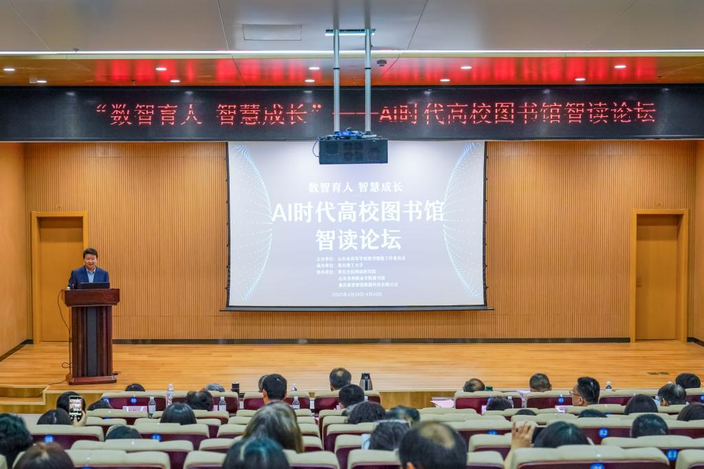 为构建新型图书馆智慧服务体系,响应全民阅读号召和助力推进国家教育数字化战略,4月29日,由山东省高等学校图书情报工作委员会主办、365完美体育承办,青岛全民阅读研究院、山东水利职业学院图书馆、重庆维普智图数据科技有限公司协办的“2025年AI时代高校图书馆智读论坛”在图书馆学术报告厅举行。论坛以“数智育人,智慧成长”为主题,聚焦人工智能技术与阅读服务的深度融合,吸引了省内外高校图书馆专家、学者、行业机构代表及师生等200余人参与,共同探讨AI时代下的知识服务新范式与智慧阅读新模式。