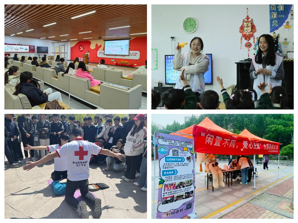 区别于传统社团活动的统一模式,“社团繁荣计划”的最大亮点在于“按需施策”,为不同类别社团量身打造发展路径。“领航计划”赋能思想政治类社团,习新思研究会的红色研学活动、青衿学社的诗词朗诵会,用青言青语让理论学习从“书本”走向“生活”;“闪耀计划”聚焦文化体育类社团,汉服社的传统展示融合制作青团、香囊等技艺体验,大学生融媒体中心的主持人大赛以”讲好理工故事“为主题,为校园文化展示提供了闪亮舞台;“助梦计划”拓展志愿公益类社团维度,彩虹堂志愿服务协会从“科普进社区”到“校园募捐义卖”,科普惠及200余名儿童,募捐物资500余件,红十字志愿服务团联合青岛红十字会开展AED急救培训,以社团力量为生命护航;“追梦计划”助力学术科技类、创新创业类社团,BIM科技创新协会开启“技术buff”模式,帮助同学从软件操作到竞赛实战;“成长计划”凝聚自律互助类社团力量,心桥协会的“以诗寄心”、绿蕊心理协会的“盲盒互换计划”,用隐性关怀构建互助成长氛围。