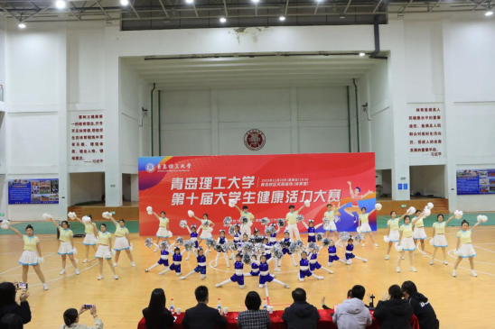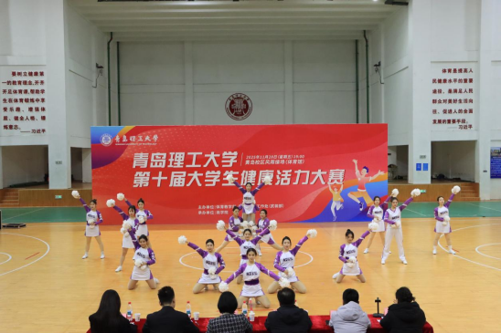 为进一步营造校园体育活动氛围,增强大学生身心素养,11月28日,学校第十届大学生健康活力大赛在黄岛校区风雨操场举行,比赛由学生工作处、校团委、体育教学部主办,商学院承办,学校学生工作处(武装部)副处长兼就业指导中心主任邵先锋、校团委副书记李晓霞、体育教学部副主任李旭龙、体育教学三部主任叶明亮、教师李伟和余牧涵担任评委,来自8个学院共计14支队伍200余名学生参加比赛。
