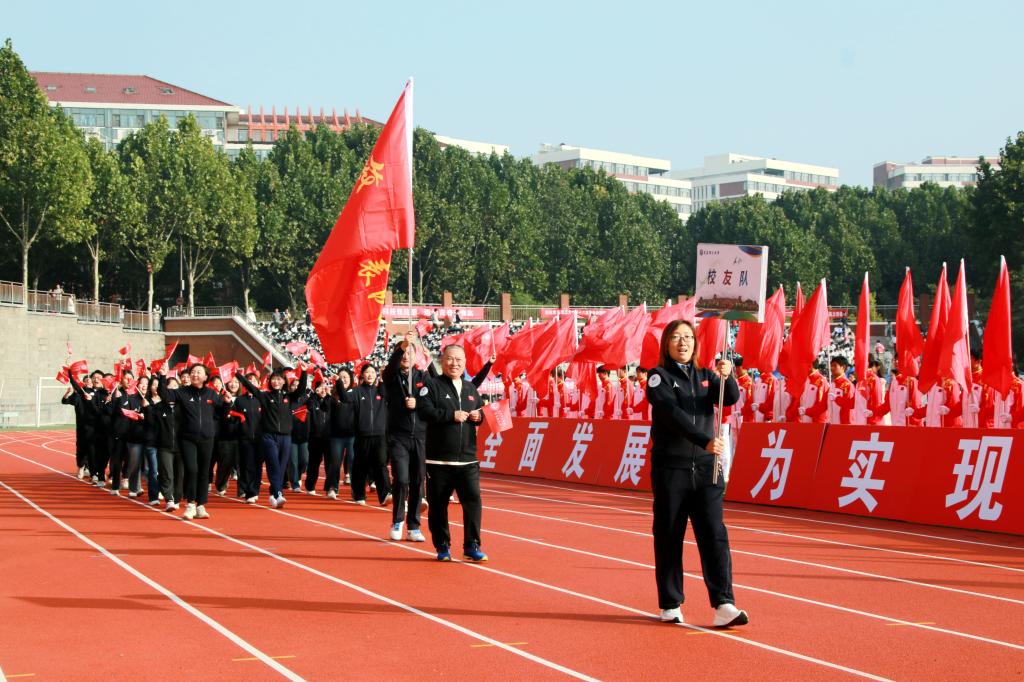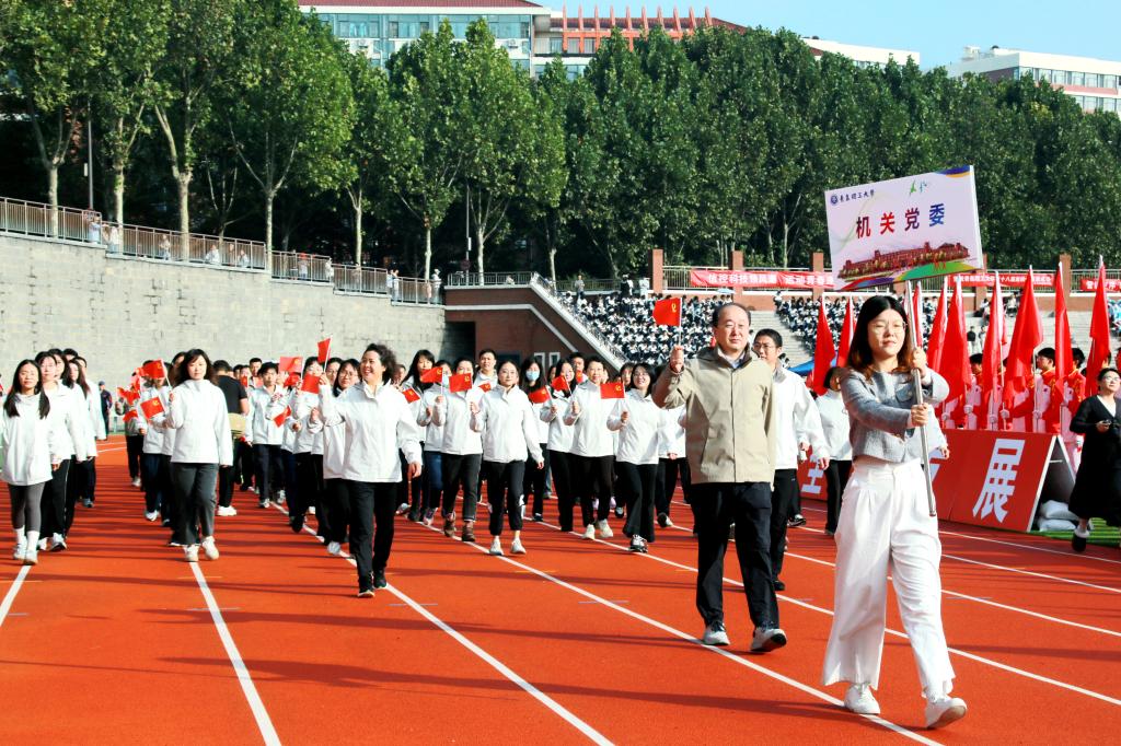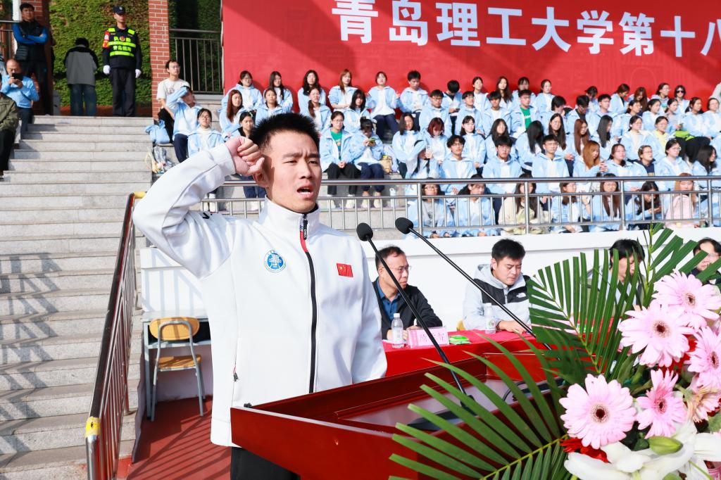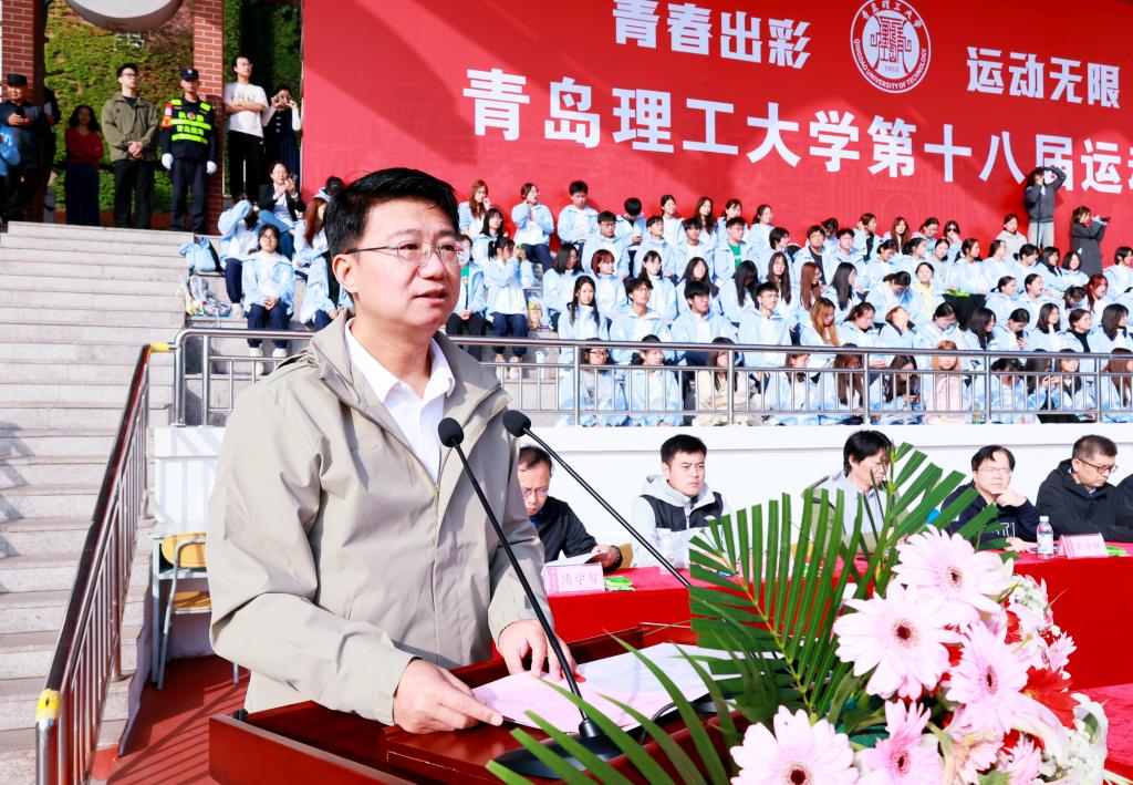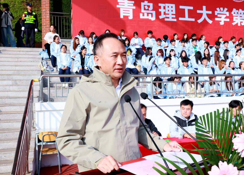 张凯在致辞中指出,体育是立德树人的重要环节,学校持续推进体育教育改革,构建高水平竞赛体系。近年来,学校体育事业蓬勃发展,师生们在各类体育竞技大赛中屡创佳绩,充分展现了青岛理工人顽强拼搏的精神和持续提升的体育实力。学校广泛开展“校园马拉松”“晨风行动”“荧光夜跑”等群众性体育活动,推动体育文化融入校园日常。希望全体师生在体育运动中淬炼青岛理工“十大精气神”,把赛场上的拼搏精神融入学习生活,以更强健的体魄、更昂扬的斗志书写青春篇章!希望全体运动员弘扬奥林匹克精神,赛出竞技水平、赛出精神风格、赛出个性风采、赛出团结友谊;希望裁判员公正执裁,师生文明观赛,预祝运动员取得优异成绩,运动会圆满成功。