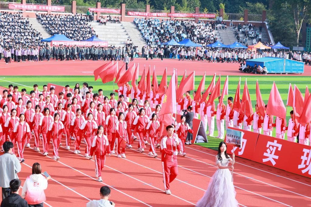 在激昂的运动员进行曲中,国旗、校旗、红旗方阵,裁判员、师生及校友代表队方阵精神饱满,步伐铿锵地入场。各方阵通过统一的着装、激昂的口号、鲜亮的横幅、多变的队形以及精彩的快闪表演,多角度、全方位地展示独特风采与青春活力。现场掌声如潮,喝彩声此起彼伏,气氛热烈非凡。
