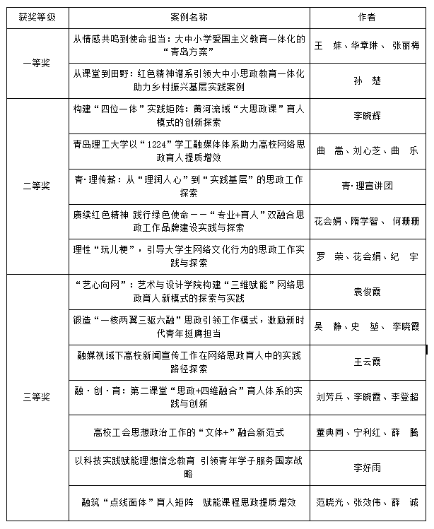 根据《关于举办2025年网络教育优秀作品评选展示活动的通知》及《关于开展2025年度基层思想政治工作优秀案例征集的通知》,宣传部高度重视、精心组织,会同相关部门组织评审,形成获评名单,名单如下。