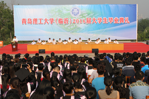 校长王亚军发表热情洋溢的讲话,副校长李东主持市北校区、黄岛校区典礼,副校长李国华主持临沂校区典礼,副校长张伟星宣布各学院毕业生获得学位情况,临沂校区副校长朱卫东宣读《临沂校区关于表彰2016届优秀毕业生和考取硕士研究生同学的决定》。教师代表、毕业生代表先后在典礼上发言。