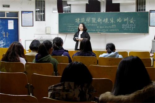为了促进学院新媒体平台宣传发展,培养广大同学运用新媒体的能力,近日,建筑学院在建筑馆206召开新媒体培训会。本次培训会是由建筑学院团总支主办,建筑学院团总支副书记冯婉秋等担任主讲,学院各年级团支部全体成员参加培训会。