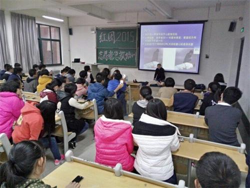 11月19日,嘉陵江路校区红十字志愿服务团在嘉陵江路校区主教学楼举行为期两天的志愿者急救培训。