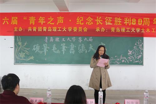 11月12日,由校团委主办、土木学院承办的第六届“青年之声·纪念长征胜利80周年”硬笔毛笔书法大赛在3号实验楼601教室举行。中国硬笔书法协会理事、青岛书法协会主席杜建民,青岛硬笔书法协会评审委员会主任王瑞,青岛硬笔书法协会成员朱国涛,青岛联艺商贸有限公司孙红艳,土木学院褚雪松担任评委。土木学院党总支副书记邹传波等参加大赛。