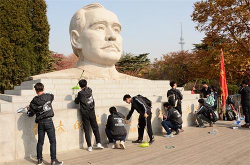 正值十一月,中山公园菊花盛开,游人如织。站在孙中山先生的雕像前,大家的民族责任感油然而生,为实现中华民族伟大复兴中国梦的信念更加坚定。同学们向游客介绍孙中山先生于青天白日洗濯乱世的丰功伟绩和在辛亥革命中的那段开辟千秋伟业的伟大事迹,并组织游客们在“辛亥枪声兴革命,天下为公万古名”横幅上签名留念。之后,志愿者们开始清理园中的垃圾,并对孙中山先生的雕像进行清理。