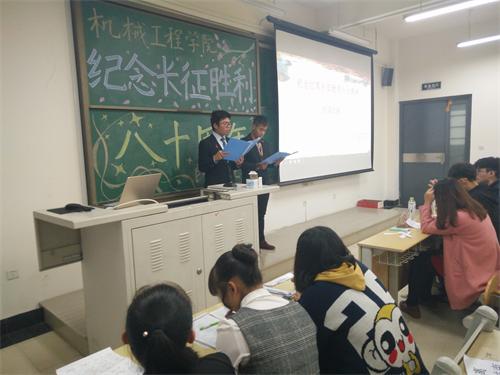 近日,机械学院在主教学楼B424教室举行纪念红军长征胜利八十周年朗诵比赛,现场气氛热烈,收效良好。