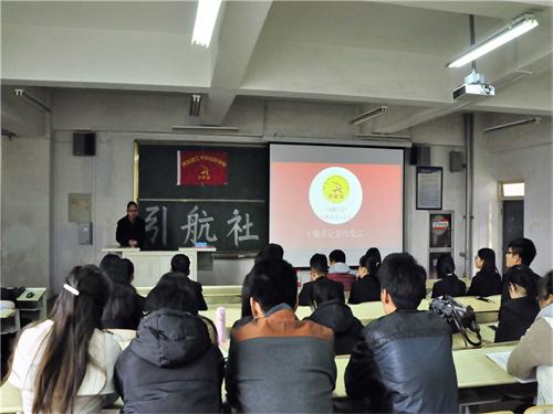 11月3日下午,新一届经贸学院引航社成立大会在二教224教室举行,经贸学院党总支副书记王粲到场讲话。