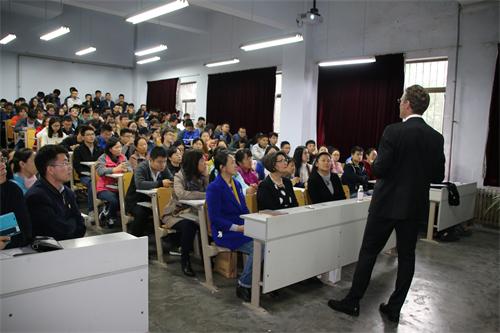 Dr. Walter Schweizer用英语简单介绍乐观和积极心理学,他指出积极心理学是致力研究人的发展潜力和美德等积极品质的一门学科,提倡用一种积极的心态来对人的许多心理现象包括心理问题作出新的解读,从而激发人们自身内在的积极力量和优秀品质,并根据自己的实例进行说明。之后,Dr. Walter Schweizer向我们介绍了一些常见的心理问题,并说明应对这些问题的有效方法,包括加强身体锻炼、注重心理健康和身体健康的平衡性、注重积极的心理暗示、减少工作生活中的心理压力等。他强调了完善自身人格品质、树立积极的人生态度的重要性。