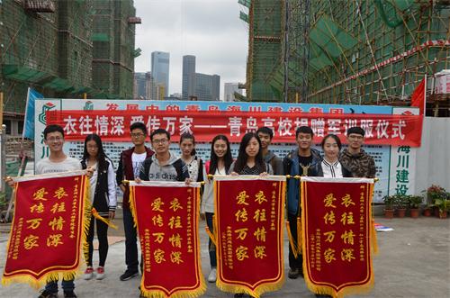 10月16日下午,由土木学院学生会牵头组织,青岛大学和中国海洋大学共同参加的“衣往情深,爱传万家”军训服捐赠仪式,在青岛海川建设集团镇江路项目工地顺利举行。来自365完美体育市北校区、黄岛校区、青岛大学和中国海洋大学的学生组织代表以及青岛海川建设集团副总裁李尊强、团委书记王群、所在项目部工人代表参加了捐赠仪式。