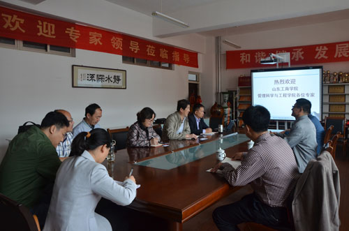 10月13日,山东工商学院管理科学与工程学院院长温国锋教授,副院长吴昌友副教授,房地产与物业管理研究中心主任马立强副教授一行人来到管理学院进行工作调研。管理学院院长赵金先、党总支书记刘瑛、副院长姜东民、副书记申维东及工程造价教研室、工业工程教研室、实验中心主任出席本次交流会。双方就本科人才培养、学科建设及事业发展等共同关心的问题进行沟通交流。