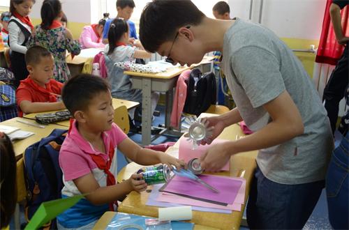 为了把知识传播给孩子们,拓展他们的视野,增加他们对生活和学习的兴趣,提高他们的动手实践能力,增强他们的合作意识,同时让大学生们通过对支教生活的体验,学会面对各种困难、磨练意志、培养吃苦耐劳的精神,用所学的知识服务社会,实现自我价值、社会价值,9月21日下午,建筑学院在鞍山路小学举行了以“环保魔术师—让我们的生活充满新意”为主题的支教活动。