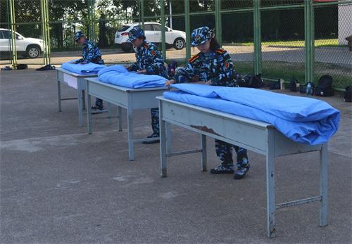 比赛以宿舍为单位分别派出一名同学参加比赛,在规定的3分钟之内将被子叠好,时间一到立刻停止,然后接受评审。在比赛过程中,每位参赛选手都积极热情,围观的所有新生都给他们加油助威,场面异常热闹。熟练的动作和技巧,方方正正的被子,赢得了在场师生的阵阵掌声。最后,经过老师和教官公平公正的评判,B区201宿舍获得了本次叠被子比赛的冠军。