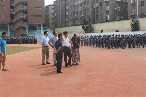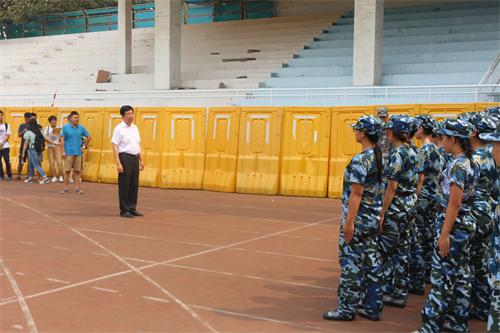 新生们以热烈的掌声迎接各位老师的到来,院领导在训练休息期间与军训教官进行了交流,指出军训时新生入学的第一课,通过军训在增强新生体质的同时还能够锻炼新生坚韧不拔的意志品质,是新生入学阶段的重要工作,希望教官在训练中既严格要求又要关注学生身体状况,确保学生安全。教官表示部队和校武装部对本次军训任务作了具体布置,他们会按照要求认真组织训练,请学院领导放心。随后,学院领导在现场看望了身体不适的新生。