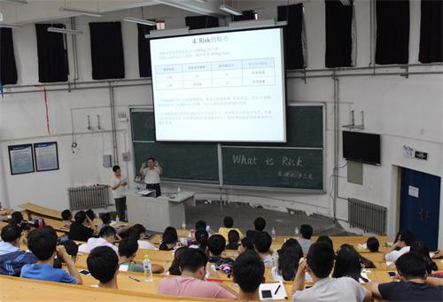 卢三圭教授用中文向大家问好后,从同学们熟悉的青岛地区切入,用两张青岛发展前后的照片做对比,表示随着时间的推移以及经济的发展,我们在青岛所面临的隐形危险要素在不断增加,如人口密度大小的增加,交通方式数量的增加等。由小见大,随着世界的飞速发展,地球生态环境的巨大改变如百年以来全球气候的改变,都是在我们人类发展进程中不可避免的未知的挑战与风险。我们必须详细了解各种风险的特点才能进行最大限度的避免。卢教授用多个表格及大量文字性叙述阐明了各处的危险性大小,并表示自然灾害的危险性比直接人为造成灾害的危险性大很多。卢教授表示,彻底消除风险在理论上是不可能的,但通过对风险进行了解认识,可以精确地控制风险性以达到最大限度地避免风险的目的。而从理论进入实践时,风险的科学预测和对风险大小准确量化显得尤为重要,如飞机事故vs 车辆事故,由于损害强度的不同使得人们认为乘坐飞机比驾驶车辆更危险,实则相反。卢教授表示对风险的控制管理是十分重要广阔的学问,在学习工作中我们必定要对风险性有一定了解。讲座最后,卢教授提出了几个问题促使同学们思考,以便大家将对风险性的重视融入到生活学习工作之中。