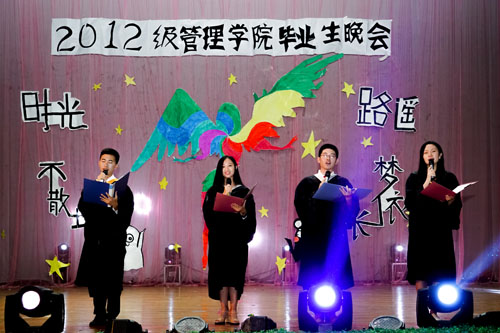 今天的离别不是结束,而是新的开始。本次晚会的成功举办,离不开学院领导的大力支持,更离不开管理学院学生的精心筹备。此次晚会不仅让2016届毕业生重拾大学四年美好回忆,更为学院学生提供了一个展示自我秀出精彩的舞台。在此衷心祝愿毕业生们始终怀揣对大学时光的美好回忆,扬帆起航,创造更加精彩灿烂的人生。(管理学院新闻中心)