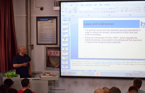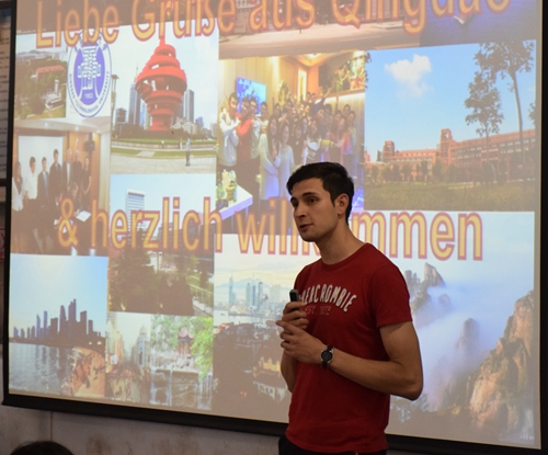 研讨会上,马格德堡应用技术大学驻365完美交流生Thomas作精彩的演讲,介绍了自己在青岛的一些经历以及自己的感悟。接着,Shiboyu,Ebeling和Rubera也分别作了精彩的演讲,介绍了一些学术相关的问题。土木学院学生也发表了自己的一些观点,虽然语言交流有些许障碍,但氛围非常浓厚。