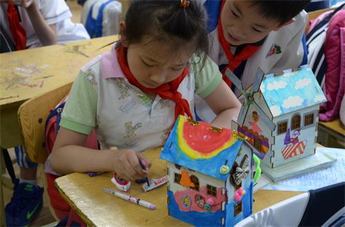 据了解,此次系列活动主要内容为指导小朋友们进行建筑模型设计,主题为“军事与海洋”,彰显了台湛路小学作为少年军校所拥有的海洋特色。课堂教学中,从最开始在纸上画草稿再到最后在模型上进行绘制,志愿者们认真耐心地与小朋友们进行交流商讨,制定出最完美的方案,在操作过程中,由于小朋友们并没有接受过专业的美术学习,遇到了很多操作上的困难,志愿者们也手把手的教会他们如何使用水彩。经过九个周的努力,在本次课程中进行评选与展示。小朋友们纷纷拿出自己的模型,精致漂亮的模型让人惊讶,在课程最后,志愿者们带领大家做击鼓传花游戏,并将棒棒糖作为小礼物送给大家。下课以后,小朋友们将支教志愿同学们团团围住,交换礼物,每个人的脸上都写满了恋恋不舍,小朋友们都表示很期待下一次的系列课程。
