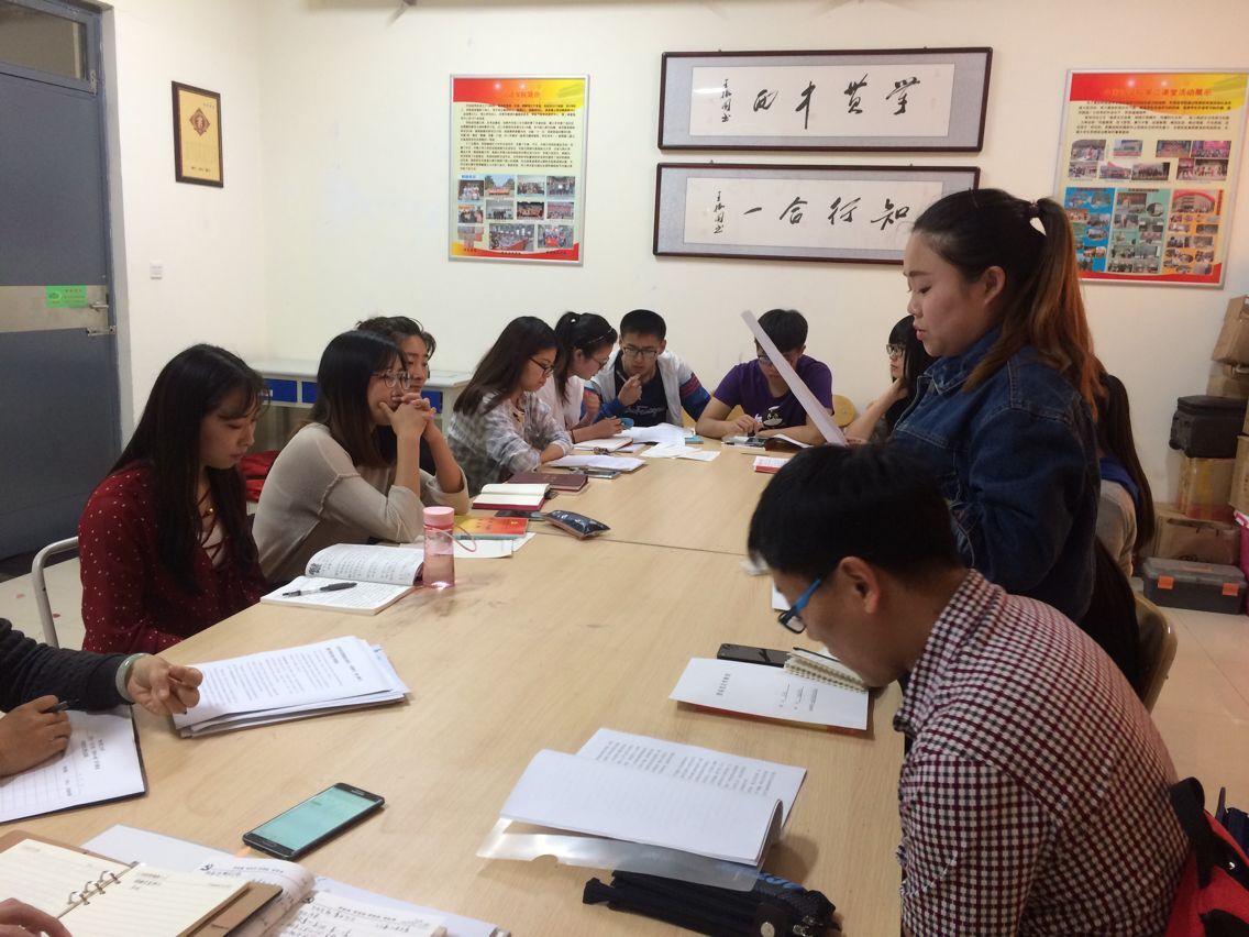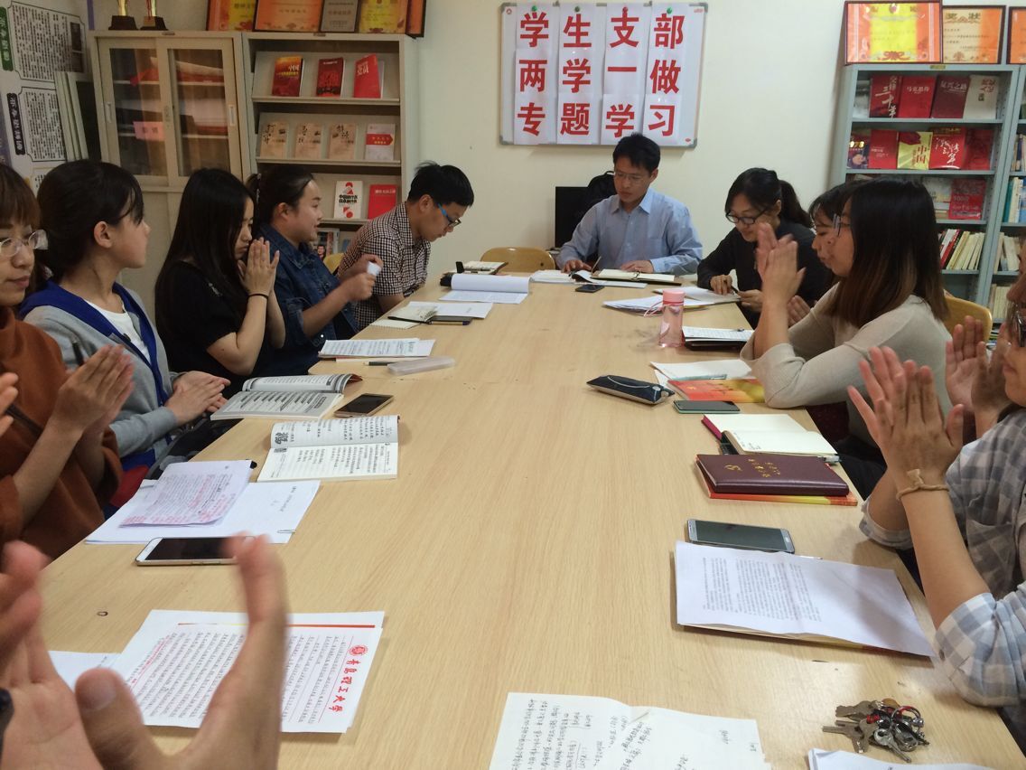 根据《外国语学院“两学一做”学习教育工作实施方案》的学习安排,5月25日下午,外国语学院学生党支部在嘉陵江路校区四公寓红色书屋召开以“讲政治,有信念”为内容的专题讨论会。党总支副书记田洪杰,学生支部书记范晓光,辅导员黄忠、马松以及全体学生党员参加会议。