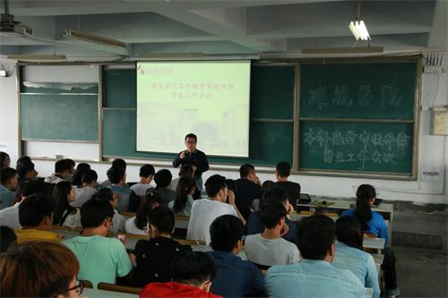 为调动全院师生的积极性,更好的迎接学校2016本科教学审核评估,建筑学院于5月25日下午在建筑馆314、一号教学楼400阶召开本科教学审核评估工作专题会议。建筑学院全体教师,学院各年级、团总支学生会主要学生干部、学生党员、入党积极分子参加会议。