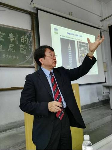 报告主要围绕着TMD用于结构振动控制的原理及工程应用案例,着重介绍了林其璋研发小组所开发的多频调谐质量阻尼器(MTMD)的工作机理和试用条件,分析了其在结构控制方面的实际效果及优点。林教授的讲解深入浅出,极具吸引力,在座广大师生获益匪浅。报告结束后,现场进行了互动讨论。