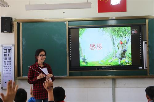 在前期多次沟通的基础上,5月19日上午,爱心社同学提前到达嘉陵江路第一小学。小学生们正在做广播体操,老师带领爱心社的同学们进入教室为接下来的授课做准备。两人为一组,三组同学上第三节课,另外三组同学上第四节课。10点,授课正式开始,爱心社的同学们开始全身心投入到与孩子们的交流与指导中,他们一方面从生活常识、百科知识、英语知识进行教育,拓展孩子们的知识面,并提高对于科学知识的兴趣;另一方面通过感恩教育素材,引导孩子们学会感恩,学会帮助他人,开展价值观教育。在进行授课的同时,爱心社同学积极与孩子们互动,各种趣味性游戏让“大学生”融入“小学生”,欢声笑语在教室里回荡,知识在笑声中传递。