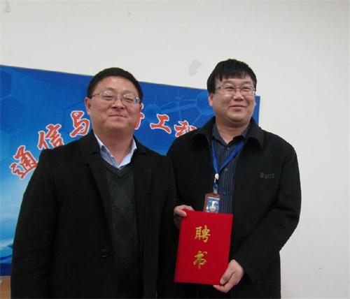 孟凡勇为李兵颁发通信学院安全辅导员聘书。并对保卫处领导到学院参加座谈会,为学生做安全知识培训表示感谢。