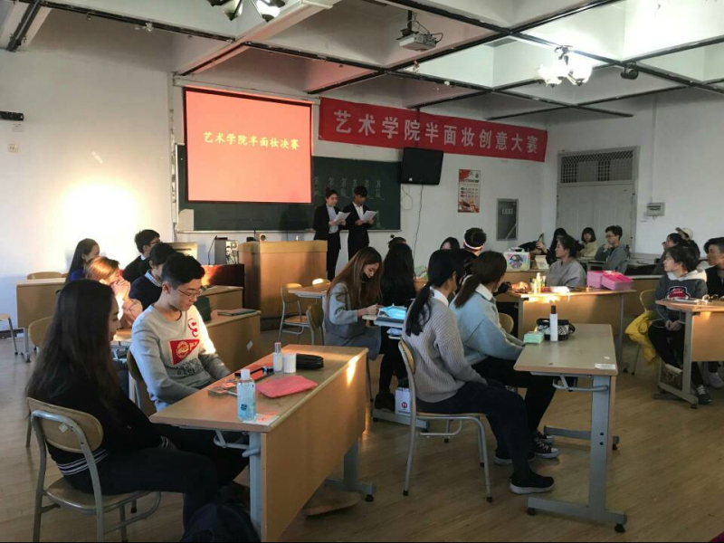 为提高学生的创造性思维,提升学生的专业水平,11月22日,由艺术学院举办的半面妆创意决赛于红楼416举行。党总支副书记牟永川、团总支书记刘红艳、服装设计系龙泉如、2017级辅导员刘芳兵老师来到现场观看并参与评审。