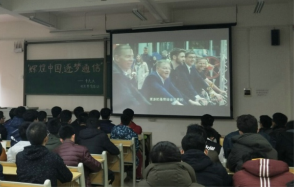 11月24日,通信学院在嘉陵江路校区组织16、17级学生观看纪录片《辉煌中国》。