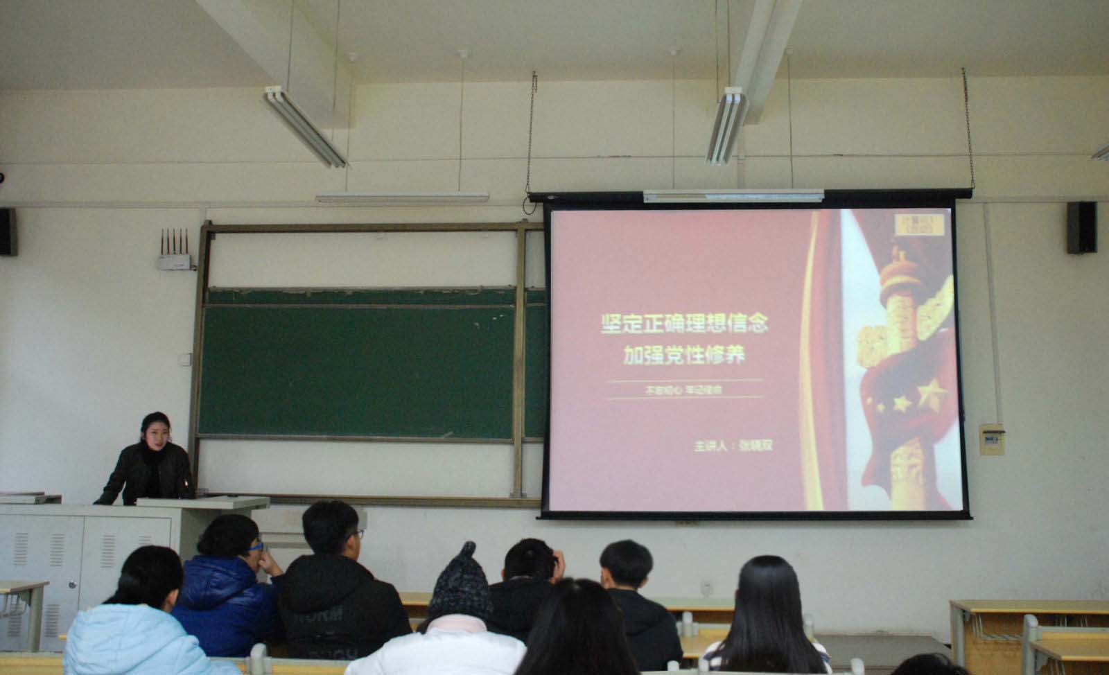 12月13日,理学院学生党支部举办以“坚定理想信念,加强党性修养”为主题的十九大精神解读专题讲座,辅导员张晓双主讲,理学院入党积极分子、学生骨干等参加了讲座。