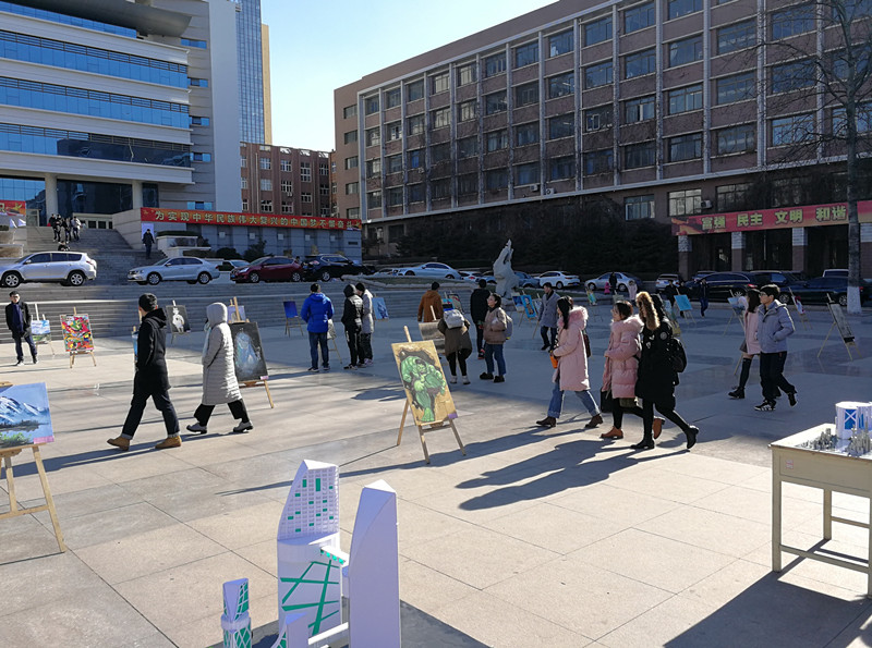 为了贯彻习近平总书记“坚定文化自信,推动社会主义文化繁荣兴盛”的讲话精神,鼓励学生通过丰富的色彩、多样的图形变化形式赋予画板新的生机与活力,展现不同的文化魅力,12月19日,由艺术学院主办,市北各学院学生会协办的创意型活动“画板上的文化”于科技广场进行展览。
