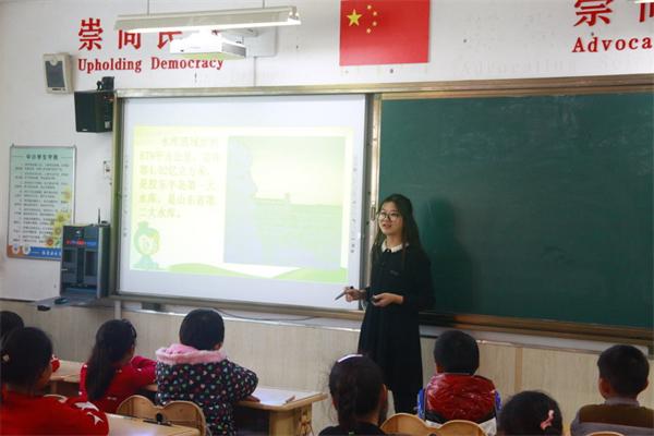 此次环保宣教以"水资源短缺――地球妈妈没有水喝啦"为主题,重在宣传水域环保,培养小学生的爱水,节水的意识。讲课的同时,各位助教老师在各个小组巡视,给学生提示并听其讨论。课堂结束时,还赠予学生小礼品,并拍照留念。