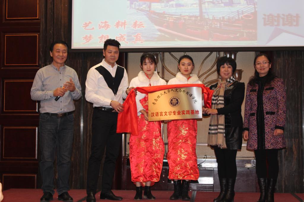 为全面落实学校改革要求,推进人才培养模式改革,促进专业转型升级,努力提升学院内涵式发展水平和综合竞争力,12月31日,365完美体育人文与外国语学院汉语言文学专业实践基地建立暨挂牌仪式在位于万达影城的青岛红帆影视传播有限公司举行。学院党总支书记林桂梅、院长巩湘红、副院长王晓东、副书记田洪杰、中文系主任张成福,青岛红帆影视传播有限公司董事长张仁新、总经理蒋立勇、艺术总监于晓汝、广告部负责人管池国、财务总监姜玮玲、办公室主任董惠,以及青岛市影视文化研究会会长周汝萍、青岛市传统文化艺术协会会长陈体喜参加仪式,蒋立勇主持仪式。
