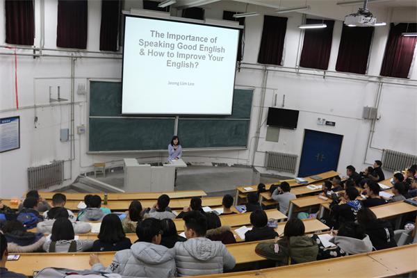 讲座上,黄浩勇为同学们介绍了自己的教育经历、研究方向、国外教育特点等,结合自身成长经历告诉同学们应该认真做好自己的时间规划、及时总结、保持积极的心态,特别强调一个人在学习和事业上应该积极进取,努力向前。最后,黄浩勇的妻子Jeong Lim Lee作了题为“The Importanceof Speaking Good English& HowtoImprove Your English?”的主题讲座,强调了掌握和使用英语的重要性。讲座中,同学们积极提问,互动交流,现场气氛热烈。